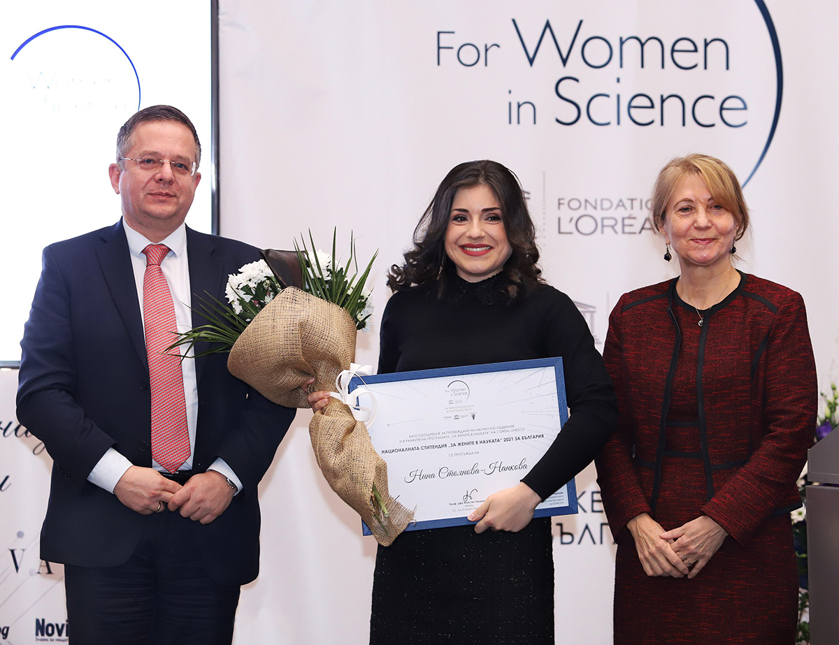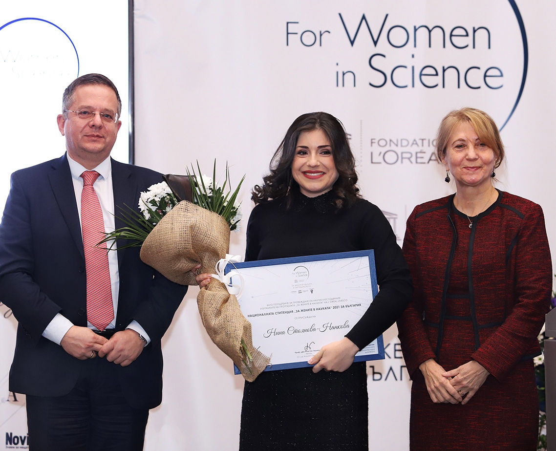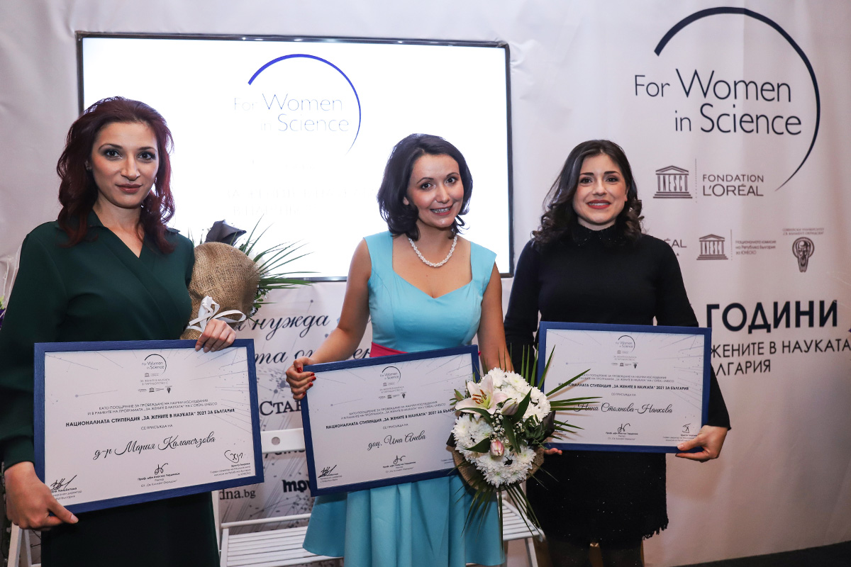Доц. Ина Анева, д-р Мария Калъпсъзова и Нина Стоянова-Нанкова са носителките на националната стипендия „За жените в науката“ за 2021 г. за България. Престижното отличие им бе присъдено за техните новаторски научни проекти на официална церемония в Софийски университет „Св. Климент Охридски“ със специалното участие на г-жа Илияна Йотова, вицепрезидент на Република България. Това е пета поредна година, в която г-жа Йотова подкрепя с присъствието си каузата на L'Oréal и ЮНЕСКО за повече жени в науката. Събитието бе уважено още от доц. д-р Диана Ковачева, Омбудсман на Р България, Дончо Барбалов, зам.-кмет на София, Н. Пр. Флоранс Робин, посланик на Франция в България, и бе гледано на живо от стотици представители на научната общност и журналисти в YouTube. Цялата церемония, на която бяха почетени и стипендиантките от 2020 г., може да гледате тук.
